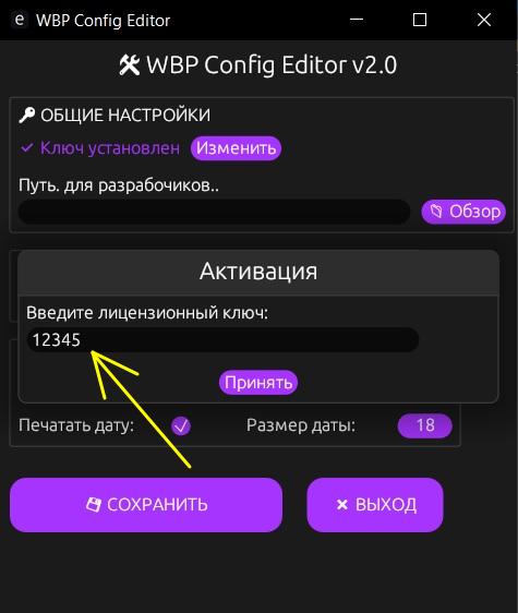 В открывшимся дополнительном окне замените 12345 - на ключ который вы получили по SMS и нажмите принять